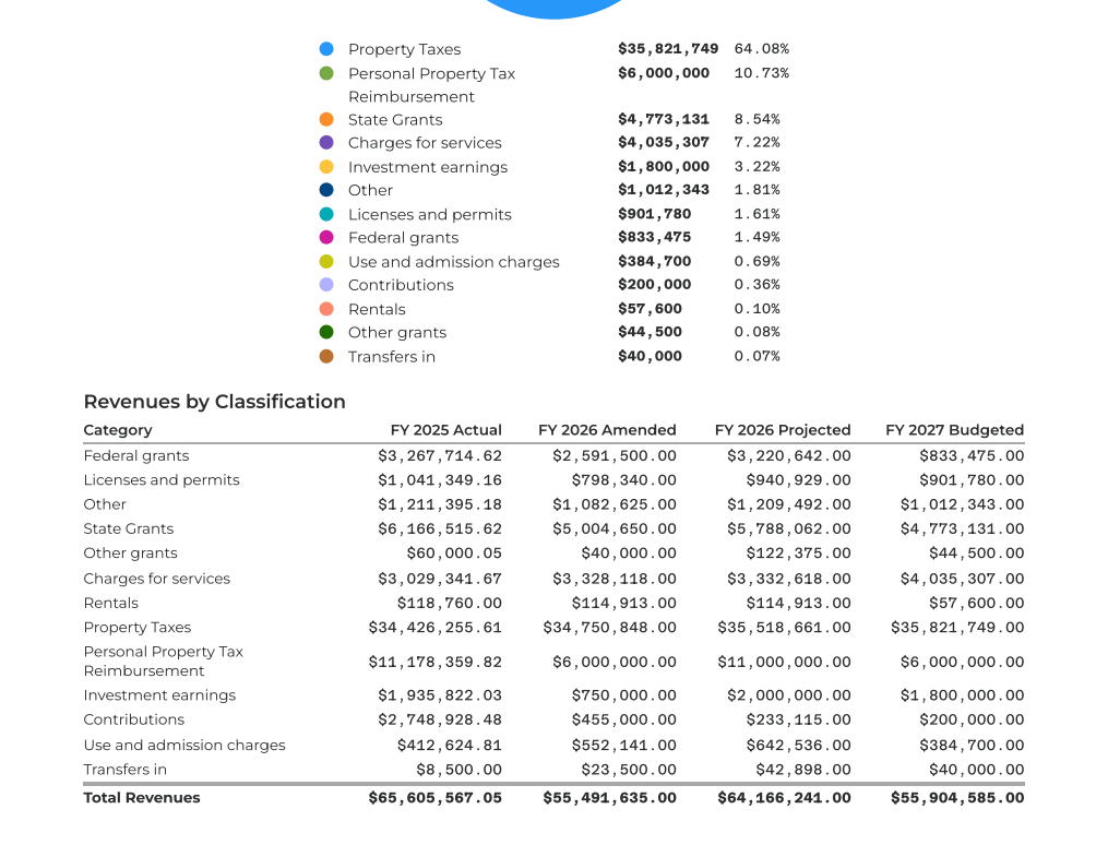 In 2025, Midland had total actual revenues of $65.6 million with $34.5 million coming from property taxes. In 2027, they are budgeting revenues of $56 million and expenses at a whopping $76 million.